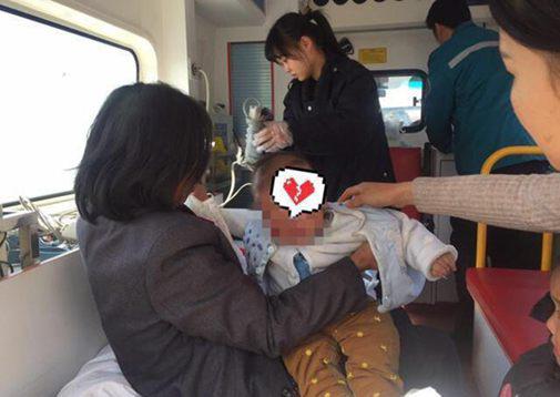 幸虧冬天衣被包裹得多,嬰兒面部有大面積淤青暫無生命危險,10:42分,救護到現場接走傷員。