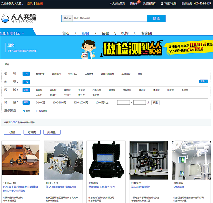 為了解決這些科研領域的痛點,2015年11月,人人實驗公司在中關村昌平園注冊成立,成為全國首個線上科研儀器共享平臺。通過整合高校、央企、科研院所等機構閑置的儀器設備及檢驗檢測服務資源,為中小微企業提供高效便捷的科技資源服務,不僅能幫助用戶“找儀器”“做檢測”,還可以根據用戶需求精準匹配,克服“設備排期久、進度慢”等困難。