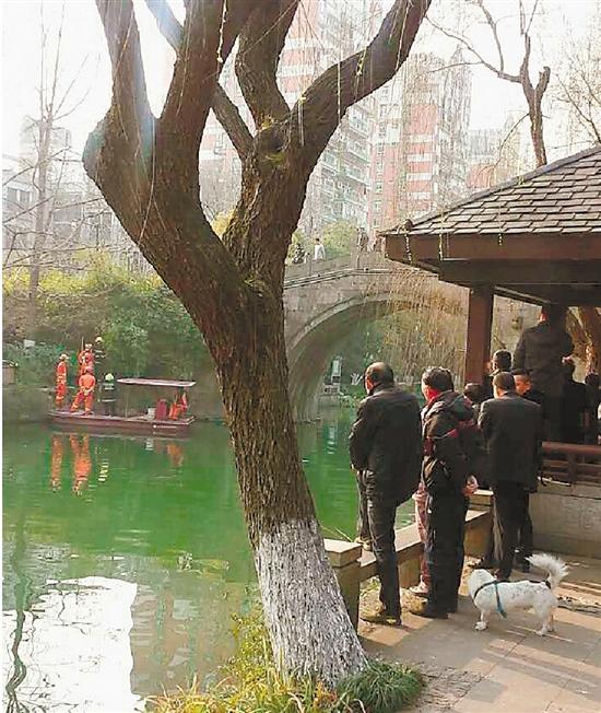 案發現場:橋上和岸邊站滿了圍觀群眾。