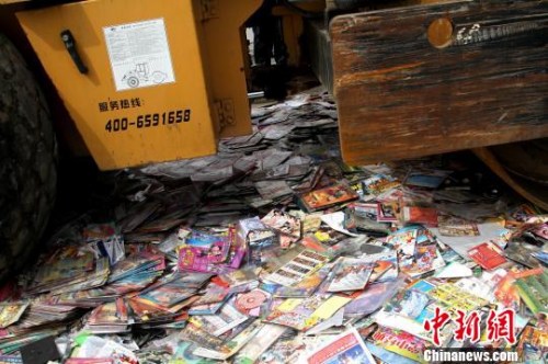 資料圖:侵權盜版及非法出版物銷毀現場。田進 攝
