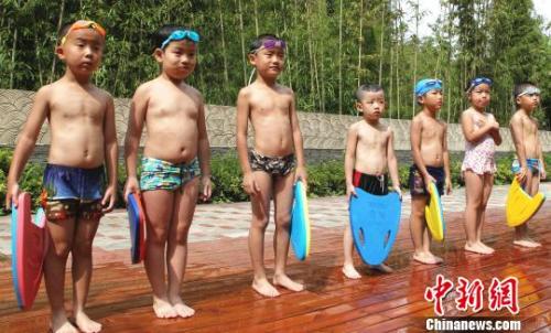 資料圖:兒童做學習游泳前的準備。周毅 攝
