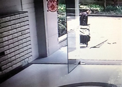 犯罪嫌疑人用小推車將保險柜運出小區。