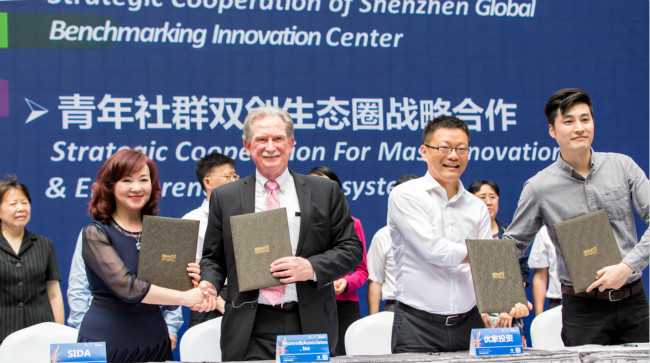 啟動(dòng)儀式上,深圳市工業(yè)設(shè)計(jì)行業(yè)協(xié)會(huì)與美國(guó)蒙羅聯(lián)合公司達(dá)成戰(zhàn)略合作,聯(lián)手在中芬設(shè)計(jì)園二期建立全球?qū)?biāo)中心,引進(jìn)美國(guó)精益設(shè)計(jì)服務(wù)。廣州優(yōu)家投資管理有限責(zé)任公司與中芬創(chuàng)意產(chǎn)業(yè)園投資發(fā)展有限公司簽署戰(zhàn)略合作協(xié)議,共同打造青年社群雙創(chuàng)生態(tài)圈。
