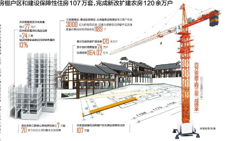 共改造城鎮危舊房棚戶區和建設保障性住房107萬套,完成新改擴建農房120余萬戶