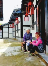 5月12日,鄰水縣袁市鎮談家大院的兩位老人坐在門前聊天。張啟富 攝(視覺四川)