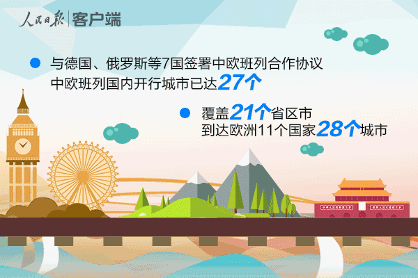 目前,中歐班列國內開行城市已達27個,覆蓋21個省區市,到達歐洲11個國家的28個城市。