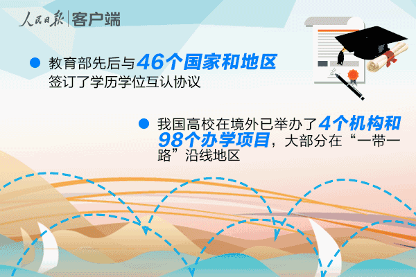 截至2016年,我國高校已在境外舉辦了4個機構和98個辦學項目,分布在14個國家和地區,大部分在“一帶一路”沿線地區。