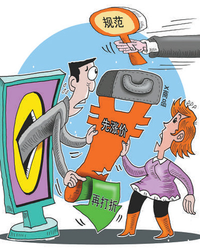 很多人認為,電商“先抬價再打折”的虛假促銷確實該治治了。不少迅速發展的電商平臺,把“價格比實體店更低”作為宣傳口號,吸引消費者眼球。誠然,有些品類,比如服裝,電商價格比商場更便宜。但也有不少電商平臺的價格水分不小,甚至為了營造“低價”的假象,玩起了數字游戲。