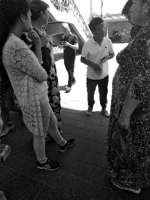 德勝門“黑一日游”本報曾進行過報道,執法部門也曾嚴厲打擊。但近日,有市民爆料“黑一日游”又現德勝門公交車站,偽裝工作人員拉客。北京晨報記者走訪發現,十多人均身著便裝,有人戴著紅袖箍或手持小旗勸游客乘黑車,確實有游客選擇黑車。而公交站內安保人員非但不制止,問路時還故意將游客指向“黑導游”方向。目前,記者已向德外派出所反映此事,民警稱“黑導游”屢禁不止。