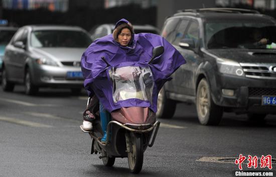 資料圖 市民在風雨中出行。中新社發 張暢 攝
