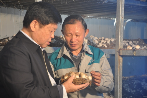 丹陽(yáng)“草菇大王”姜建新(右)