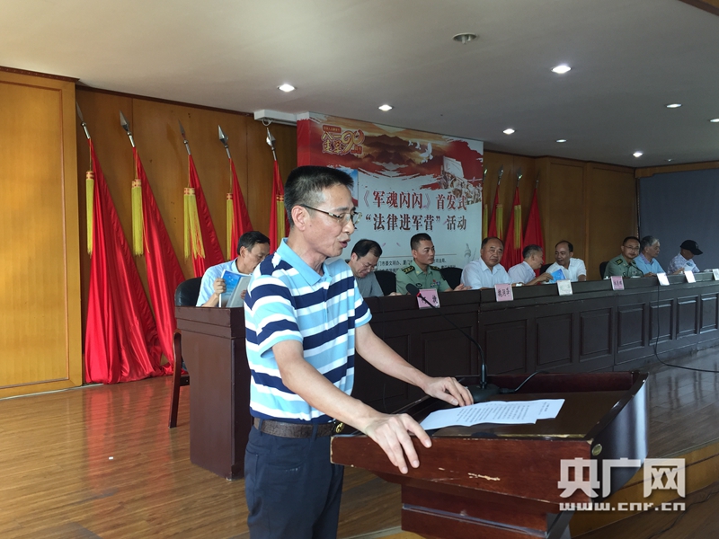 央廣網(wǎng)廈門(mén)7月27日消息(記者呂貝娜)為隆重紀(jì)念中國(guó)人民解放軍建軍90周年,7月27日下午,廈門(mén)市委文明辦、市雙擁辦、市司法局、市愛(ài)國(guó)擁軍促進(jìn)會(huì)、鷺江出版社、市文聯(lián)、市作協(xié)聯(lián)合在廈門(mén)駐軍31616部隊(duì)舉辦小說(shuō)集《軍魂閃閃》首發(fā)式暨“法律進(jìn)軍營(yíng)”活動(dòng)。