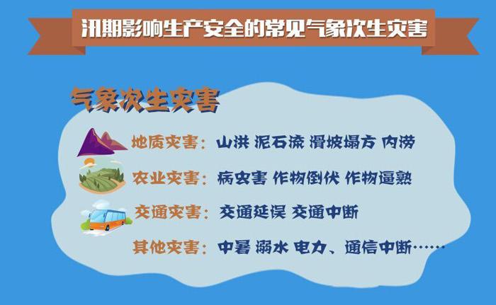 王一:我國氣象災害種類多、強度大、影響重、持續時間長,特別是在汛期,暴雨、臺風、大風、雷電等都會影響生產安全。臺風易導致船舶傾覆、生產設施翻沉;暴雨引發的洪水會導致煤礦淹井、井工礦透水、尾礦庫垮壩、露天礦滑坡、建筑物坍塌等事故;大風易導致塔吊倒塌;雷電可導致危險品、煙花爆竹火災、爆炸、電氣設備損壞、露天作業人員遭雷擊等事故。