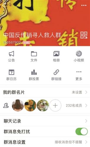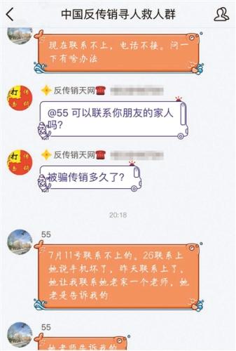 受害者家人在“反傳銷救人群”里求助