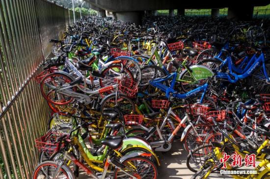 8月8日,數千輛共享單車被“遺棄”在北京一高架橋下。中新社記者 賈天勇 攝