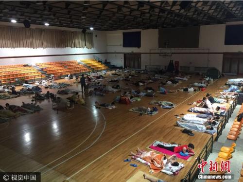 資料圖:2017年7月19日晚21時許,上海師范大學徐匯校區為暑假留校大學生開放體育館過夜避暑。 胡朔 攝 圖片來源:視覺中國