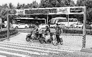 ▲當人行紅燈亮起時,機器自動放下紅色警示帶,防止行人闖紅燈! ⌒盘枱糇兙G時,警示帶自動升起,允許行人通行。