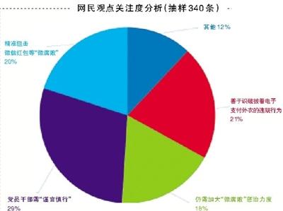 近日,有關“違規收發微信紅包”的話題成為了輿論的焦點。為了解網民對此話題的觀點關注度,以新浪微博、論壇、網頁跟帖為樣本隨機抽取340條評論并進行歸類總結,結果如下: