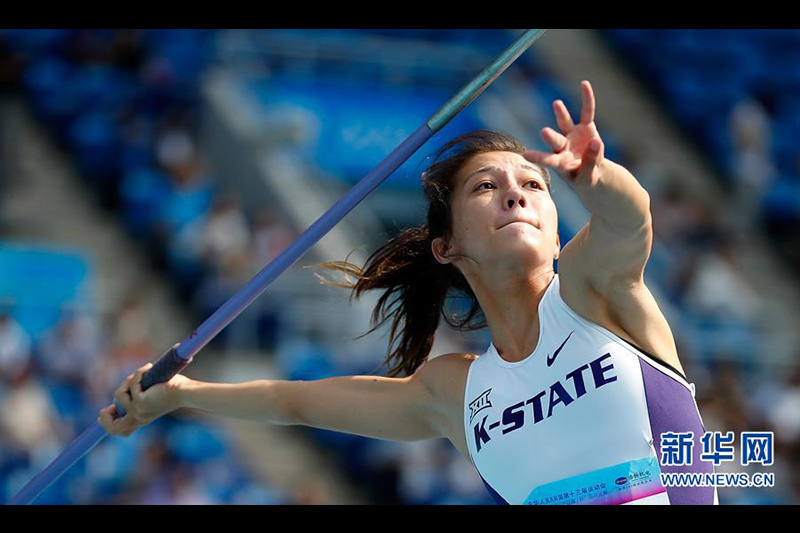 這是華人華僑選手妮娜在第十三屆全運會田徑項目女子標槍資格賽中(9月2日攝)。