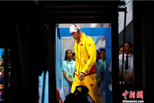 200米自由泳決賽,浙江選手孫楊以1分45秒15奪冠。 中新社記者 富田 攝