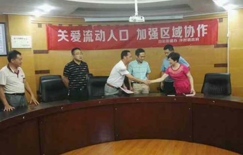 近日,婺源縣許村鎮黨委書記洪源平等一行人前往浙江省東陽市白云街道辦開展流動人口區域協作工作。洪源平與白云街道辦黨建工作負責人趙美弟就如何加強流動黨員與流動人口的管理和服務工作進行了深入探討,交流了計劃生育工作相關經驗,并簽訂了《流動人口計劃生育服務和管理工作雙向協作協議書》。在許村鎮駐東陽市流動黨支部駐地,舉行了流動人口服務中心掛牌儀式。正式成立“黨支部+計生協會”雙組合的許村鎮駐東陽市的流動人口服務中心站點。站點協會組織也正式成立,以后許村鎮在東陽市的流動育齡群眾計劃生育服務與管理工作由黨支部領導,協會負責聯絡組織。