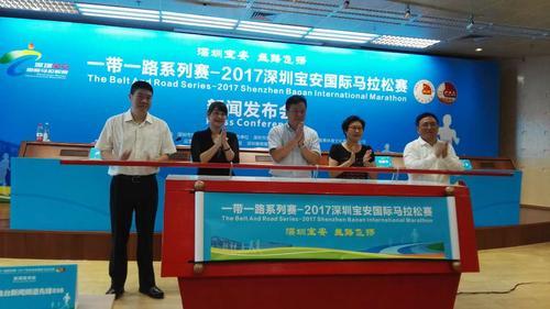 國家體育總局田徑管理中心馬拉松辦公室主任水濤、寶安區人民政府副區長梁敏華、寶安區委宣傳部常務副部長王曦、寶安區文體旅游局副局長盧清、智美體育集團高級副總裁、深圳賽格智美總經理沈偉以及特邀跑團代表、寶馬組委會各職能單位代表共同出席了20日的新聞發布會。2017深圳寶安國際馬拉松賽是由中國田徑協會、深圳市寶安區委區政府共同主辦,深圳市寶安區文體旅游局、深圳賽格智美體育文化發展有限公司聯合承辦。