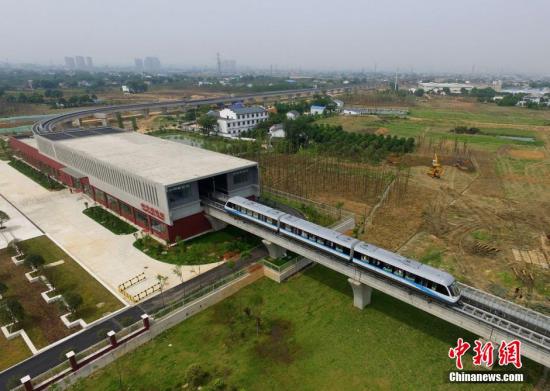 磁懸浮列車駛出長沙榔梨站(資料圖)。中新社記者 楊華峰 攝