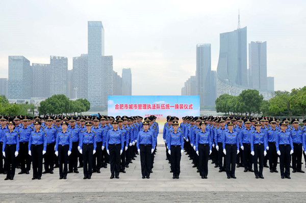 央廣網合肥9月29日消息(記者徐鵬 通訊員毛嫻靜)9月29日上午10時,合肥市城市管理執法人員換裝儀式在政務區市民廣場舉行,全市市、區、街三級3800余名城管系統執法人員全部換裝完畢,這也標志著合肥市城市管理綜合執法深化體制改革進入了新的階段。