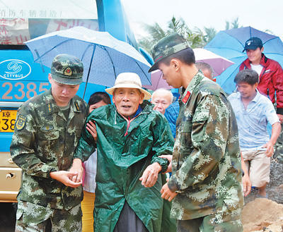 圖為15日,?诮M織群眾轉(zhuǎn)移。?谑形麄鞑抗﹫D
