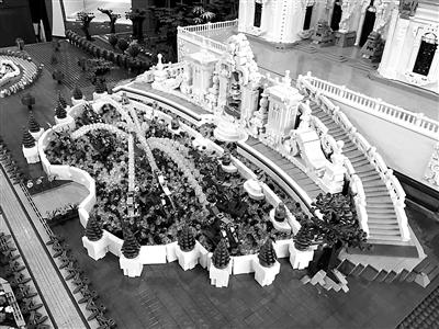 王先生介紹,團(tuán)隊成員也遇到過不少難題,例如,由于積木磚塊大部分是方形的,很少有流線型的,而大水法是一個“波浪”的造型,因而怎么去呈現(xiàn)這個造型成了難題。最終成員們通過將各種零件反復(fù)拼搭試驗,最終呈現(xiàn)出最滿意的效果。