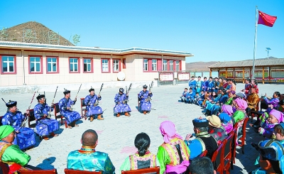 10月30日,內蒙古扎魯特旗烏力格爾藝術團在宣傳黨的十九大精神。新華社發