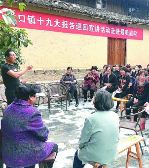 10月27日,浙江省文成縣宣傳員在宣講黨的十九大精神。趙淑清攝/光明圖片