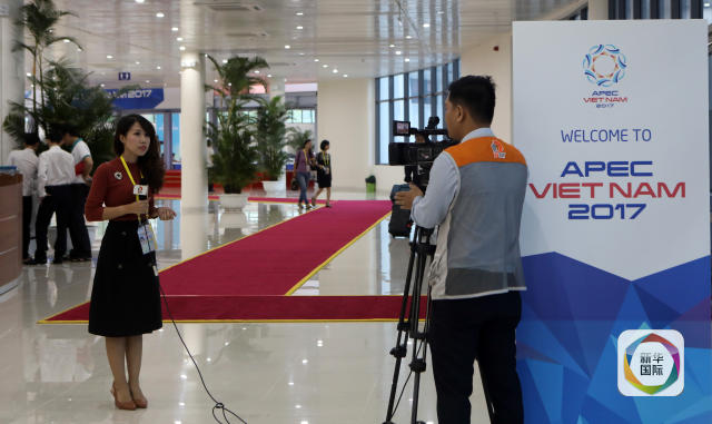11月5日,在越南峴港,媒體記者在亞太經合組織領導人會議周國際媒體中心進行報道。新華社記者李鵬攝