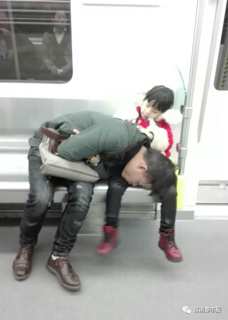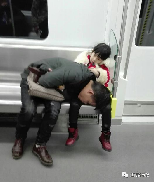 南昌地鐵上小女孩摟父睡覺令人唏噓落淚