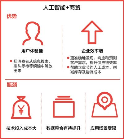 “人工智能的出現,將給商貿行業帶來革命性的變化。”范小軍說,商貿流通的最終效果集中體現為效率、成本和用戶體驗三個核心維度,傳統技術手段在提高這三個維度的績效上已經面臨天花板,而人工智能則帶來新機遇。