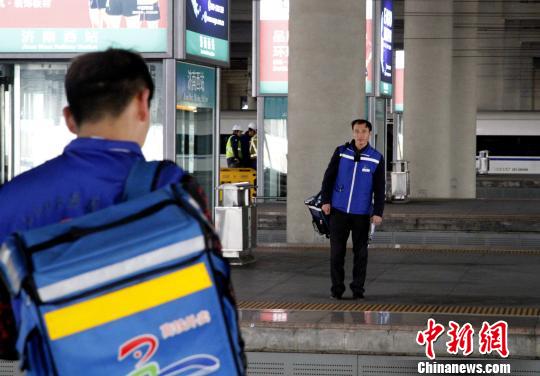 高鐵外賣業(yè)務開通后,一群穿著藍色馬甲的高鐵外賣配送員常常是站臺前久久“翹首”眺望的人。2月1日是2018年春運首日,中新網(wǎng)記者探訪了12306網(wǎng)絡訂餐濟南西站配送中心,揭秘讓吃遍中國美夢成真的高鐵外賣背后的故事。