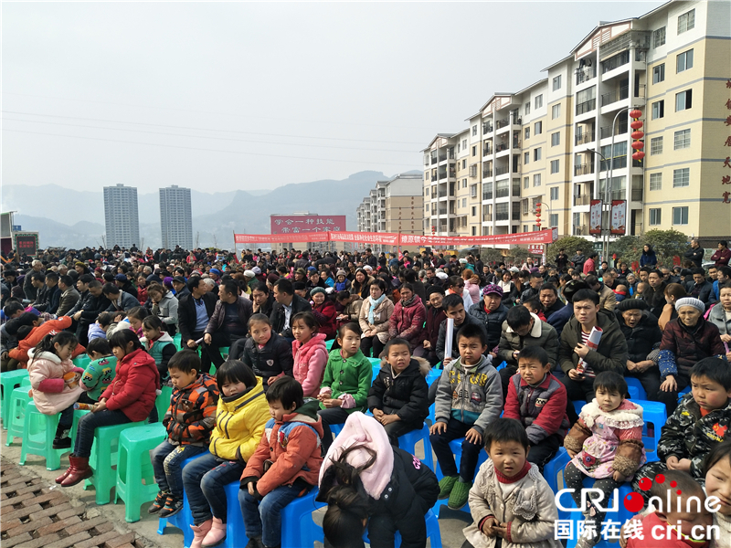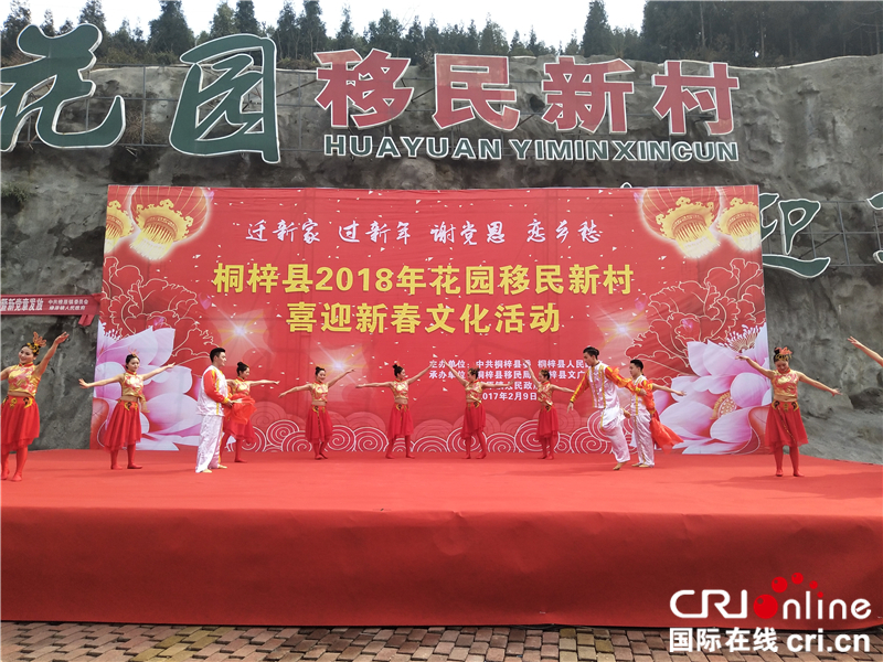 國(guó)際在線消息(記者 令狐少萍):中國(guó)貴州省桐梓縣9日舉行了2018“遷新家、過新年、謝黨恩、戀鄉(xiāng)愁”花園移民新村迎新春文化活動(dòng)。5000多名居于花園移民新村、蟠龍、楚米、桐楚大道4個(gè)易地扶貧搬遷安置點(diǎn)的搬遷群眾與當(dāng)?shù)鼐用、黨員干部一起吃湯圓、貼春聯(lián)、看演出,共同迎接新春佳節(jié)。