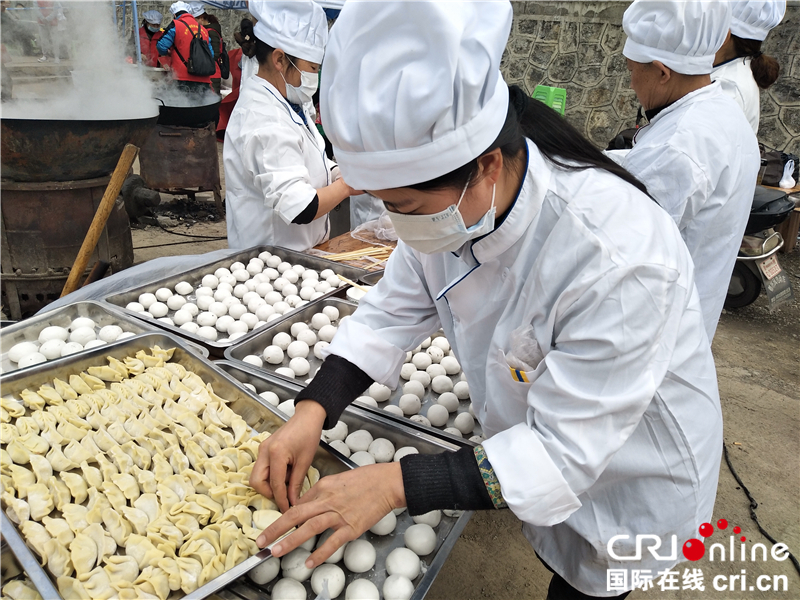 活動(dòng)現(xiàn)場(chǎng)志愿者為大家抬上煮好的湯圓
