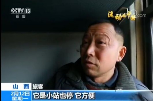 旅客:它是小站也停,它方便。坐汽車不方便,坐大車回我們村得40-50元,坐這個車才幾塊錢,就到了我們東河站了,走上三里地就回去了。