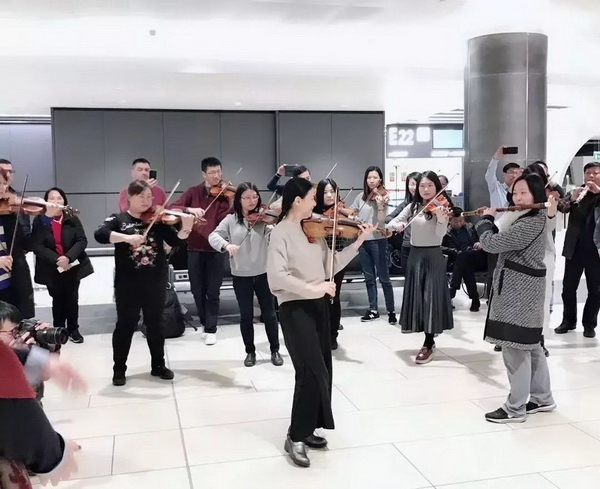 在上海的地鐵和商場,上海城市交響樂團(tuán)也做過快閃,然而機(jī)場快閃還是第一次。