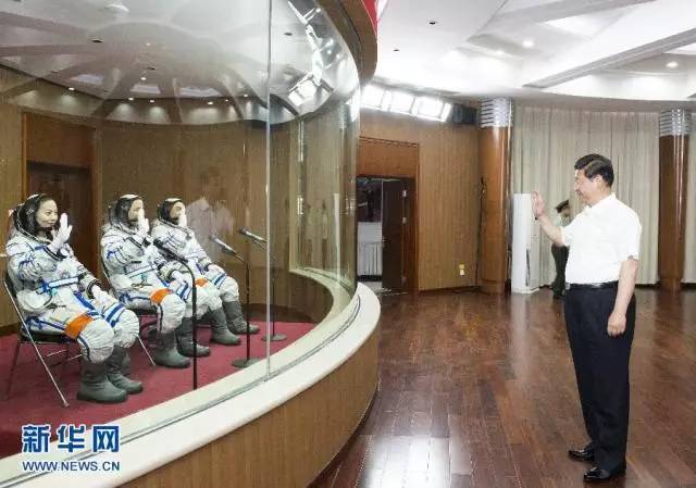 2013年6月11日,習近平來到酒泉衛星發射中心為即將出征的航天員聶海勝、張曉光、王亞平壯行。(圖片來源:新華社)