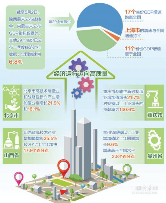 題要:近日,各省份陸續(xù)公布今年一季度國民經(jīng)濟(jì)運(yùn)行成績單,盡管各省份經(jīng)濟(jì)增速走勢出現(xiàn)了一定程度的分化,但各地在發(fā)展中堅(jiān)持按照推動(dòng)高質(zhì)量發(fā)展的要求,深入推進(jìn)供給側(cè)結(jié)構(gòu)性改革,統(tǒng)籌推進(jìn)疏功能、穩(wěn)增長、促改革、調(diào)結(jié)構(gòu)、惠民生、防風(fēng)險(xiǎn)等各項(xiàng)工作,經(jīng)濟(jì)運(yùn)行逐步轉(zhuǎn)向結(jié)構(gòu)升級優(yōu)化、質(zhì)量效益改善的更高發(fā)展階段——