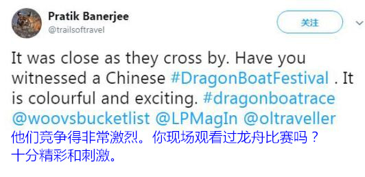 對于“歪果仁”來說,端午節(jié)不僅飄著濃香的粽子味兒,還充滿了濃厚的中國文化韻味,許多外國網(wǎng)友都從端午節(jié)的傳統(tǒng)中感受到了中國文化的魅力。