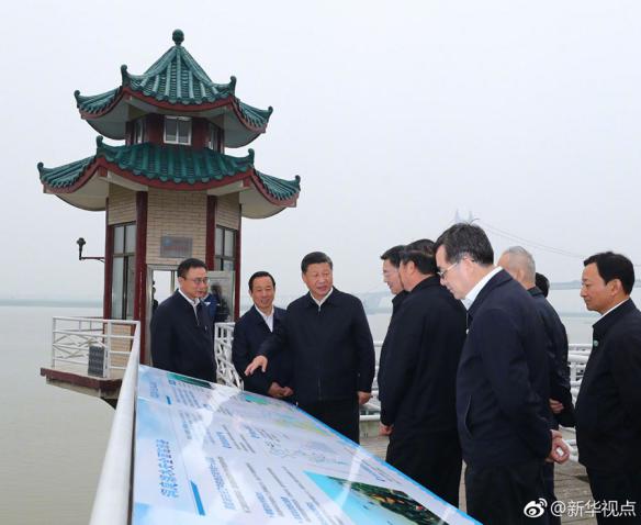 2018年4月25日,習近平考察被譽為洞庭湖及長江流域水情“晴雨表”的城陵磯水文站。圖片來源:新華社
