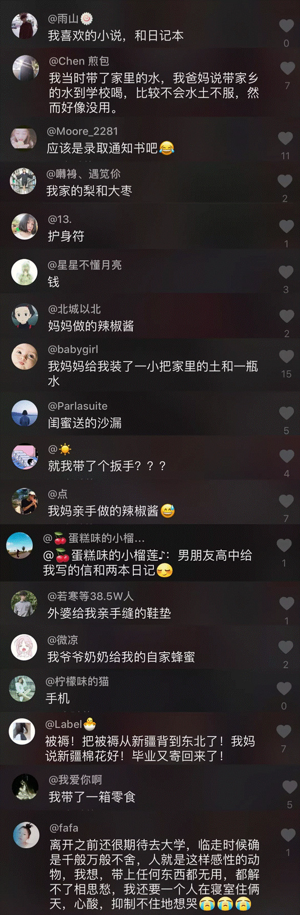 很多網(wǎng)友也在評(píng)論區(qū)里紛紛留言,分享自己當(dāng)初入學(xué)時(shí)所帶的最特殊的物件。