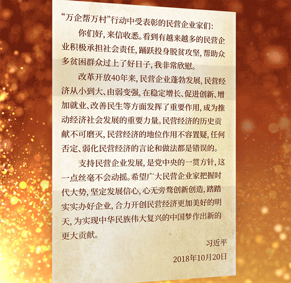 今年10月,習近平給“萬企幫萬村”行動中受表彰民營企業家的一封回信引起社會各界熱議。