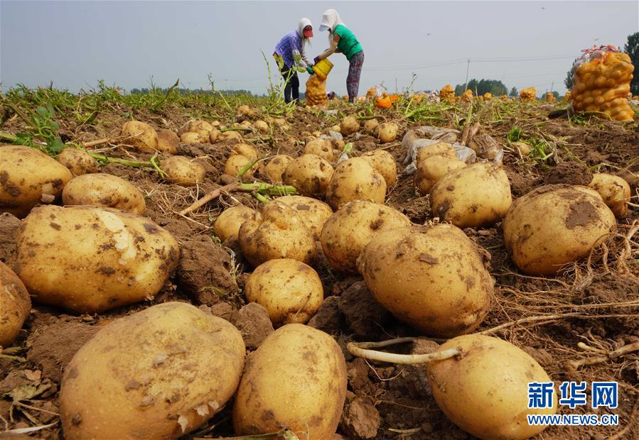河北省灤南縣胡各莊鎮西梁各莊村的農民在收獲馬鈴薯(7月4日攝)。 新華社記者 楊世堯 攝