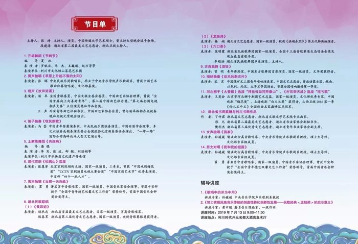 藝術輔導講座也突出地方特色,實踐和理論密切融合,藝術家不但現場指導示范音樂愛好者,還將《龍船調》這一獨具利川特色、具有世界魅力的藝術形式的深層內涵作了充分闡釋。