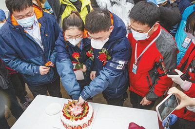 這場婚禮本來應該在上海舉行,但突如其來的疫情打亂了他們的計劃。2月19日,兩人同時作為仁濟醫院第三批、上海市第八批支援湖北醫療隊隊員奔赴武漢。如今,兩人正并肩在武漢雷神山醫院抗擊疫情。