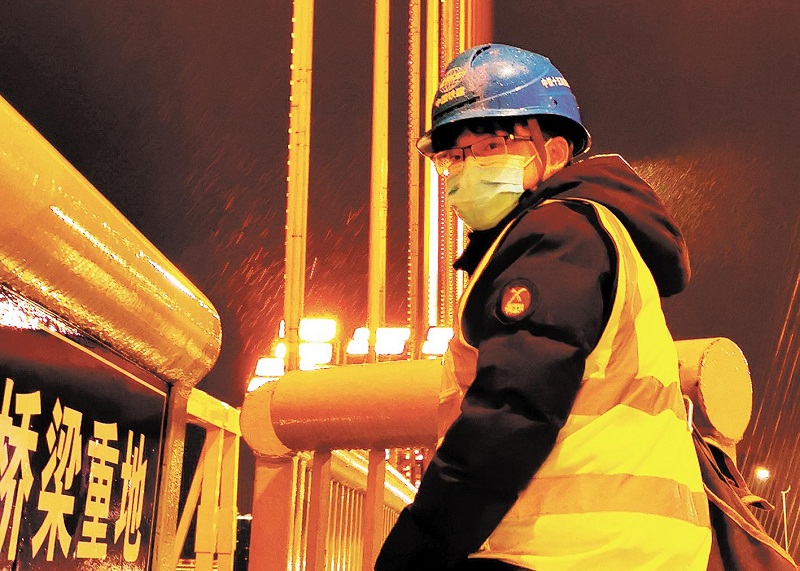 27歲的溫瑞是中鐵十五局電氣化公司武漢長江主軸橋梁彩化亮化美化項目員工。到3月15日,他已經獨守在橋下的小板房55天了。3天一小查,7天一大查,溫瑞背起工具包上橋,一巡就是4小時到6小時。溫瑞說,他守護的不僅僅是燈光,更是一種希望,傳遞著武漢人的信心和堅強。(湖北日報全媒記者 田悅 攝)